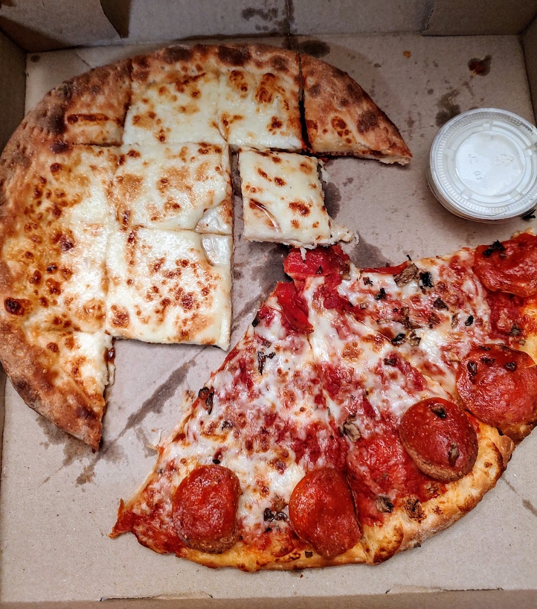 First time trying their food, it did not disappoint!! Pizza was very good and ready for pick up in less than 30 minutes. Just drive around the building to the window. We also tried the Cassie bread. It was great-- very cheesy with a hint of garlic. We will order from here again!